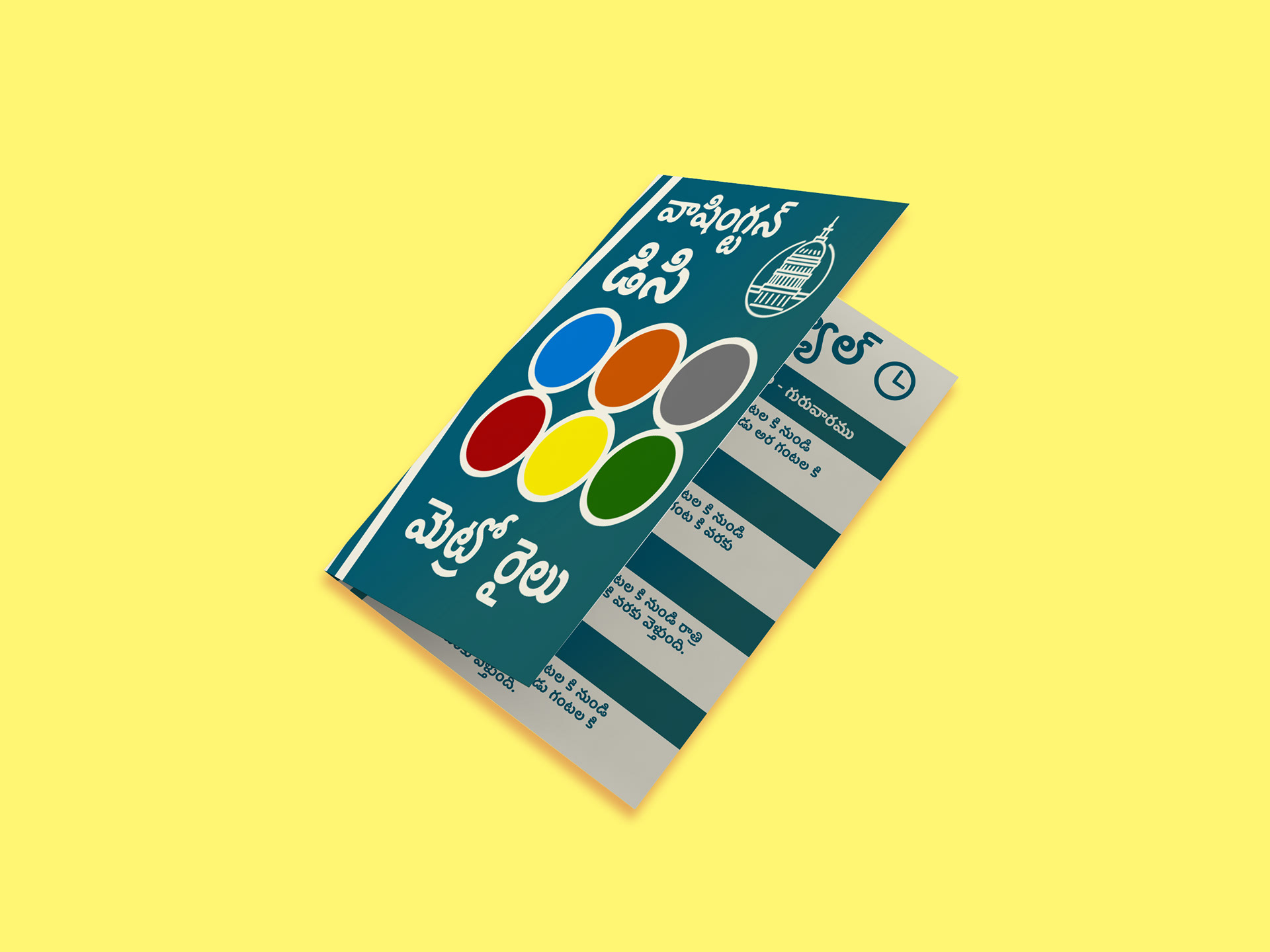 I designed a pamphlet of the Washington DC Metro in Telugu (a South Indian language) while I was learning in language training at the US State Department Foreign Service Institute.